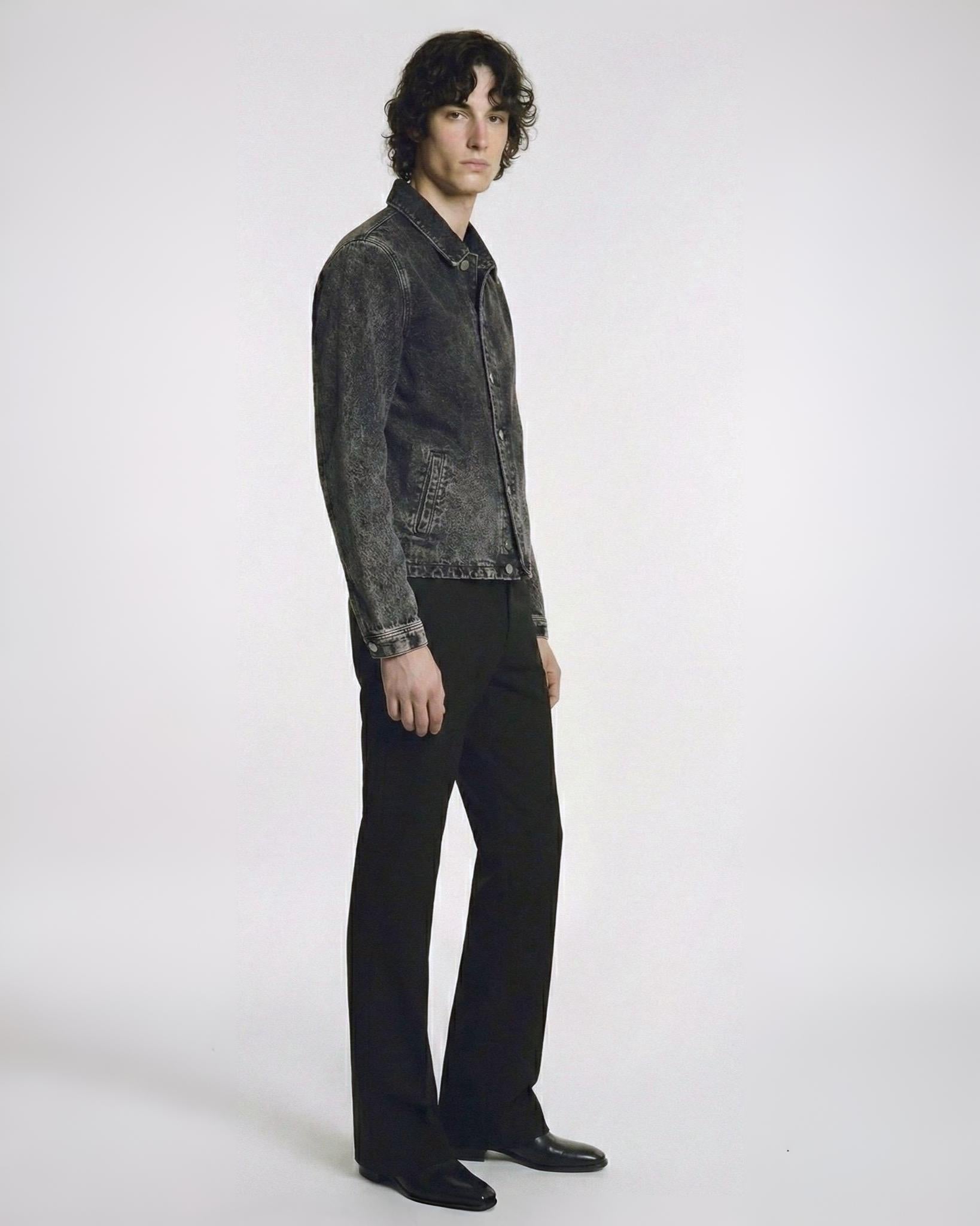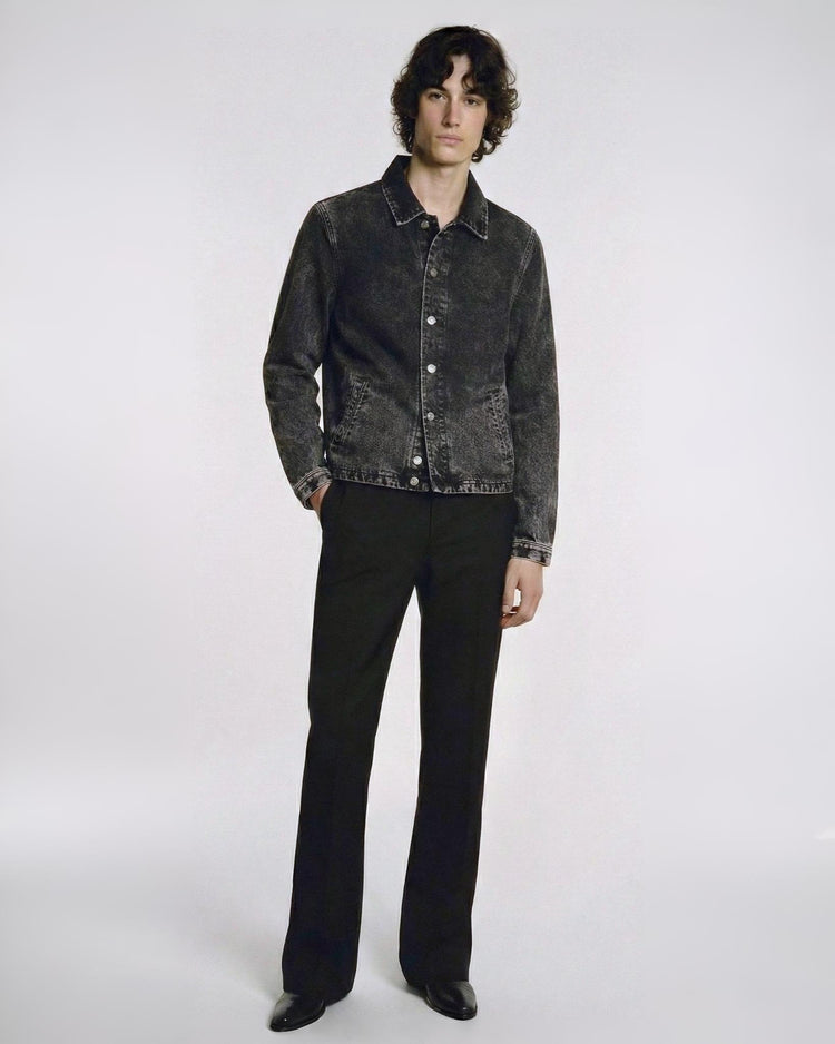 ミニマルで無駄を省いたデザインの「The Fray」デニムジャケットは、時代を超えた魅力を放ち、職人の手作業による熟練の技で着古したような風合いを醸し出します。柔らかなシルエットとシャツカラーがデザインをさらに引き立てます。スナップボタン留めがスポーティな雰囲気を添え、全体のデザインを引き立てます。
