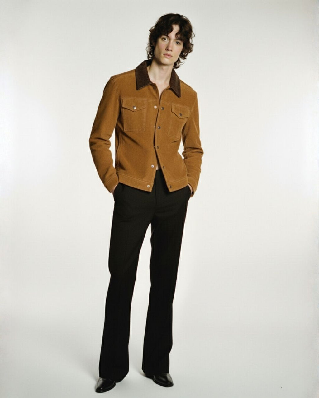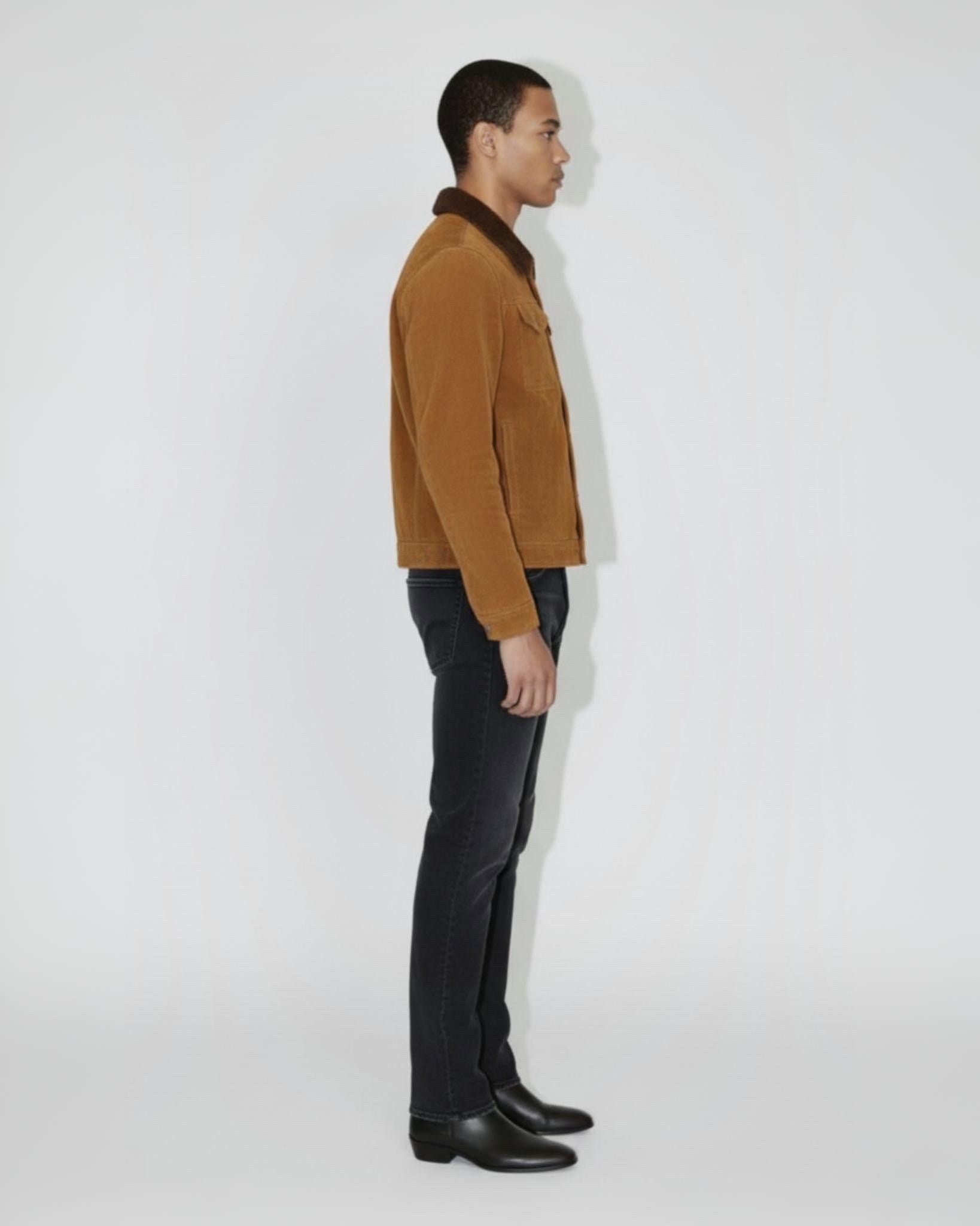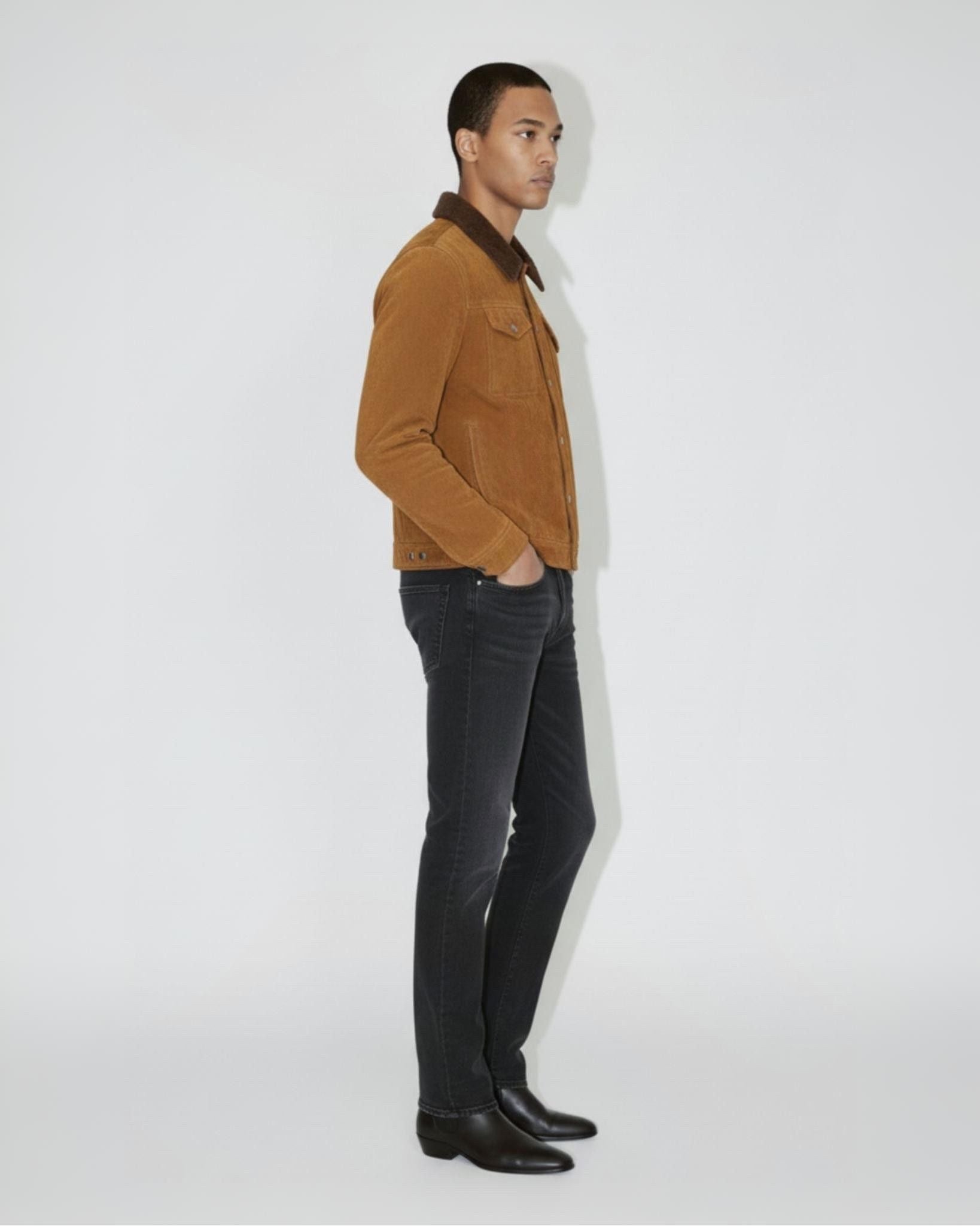 フレイは、過去の作品からインスピレーションを得て、現代的なデザインディテールとモダンなプロポーションで、既に象徴的なスタイルを現代的にアップデートしています。しなやかなタンスエードを使用し、ひび割れたレザーの襟がタイムレスな魅力を放ちます。