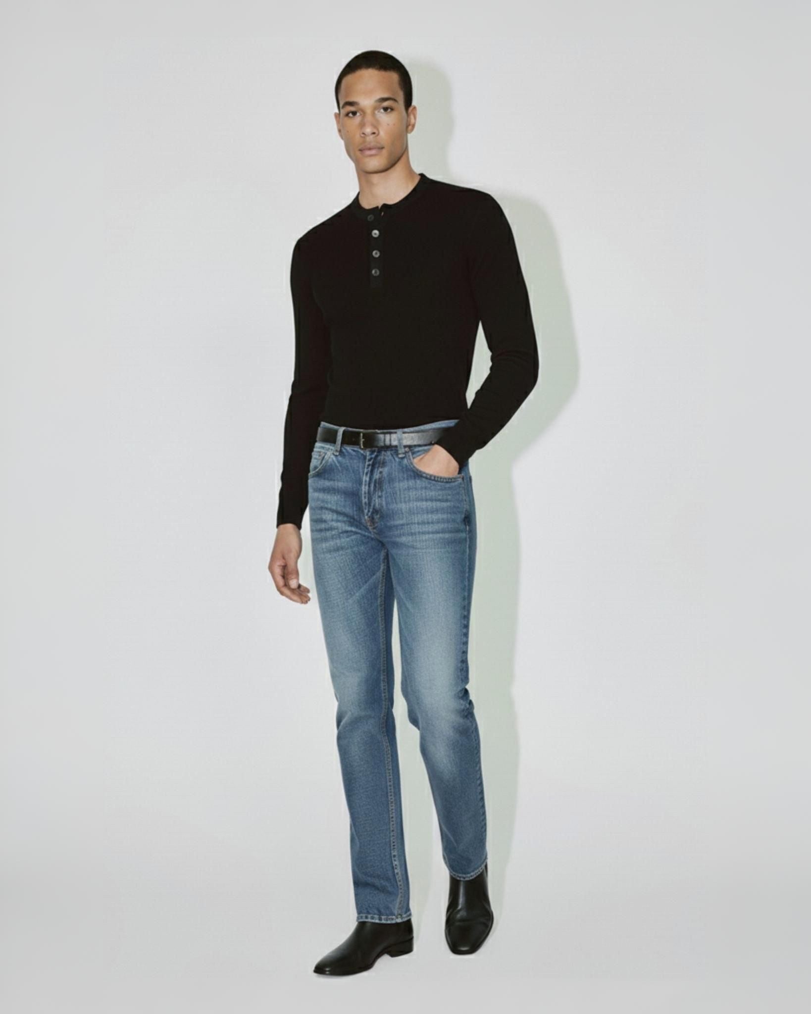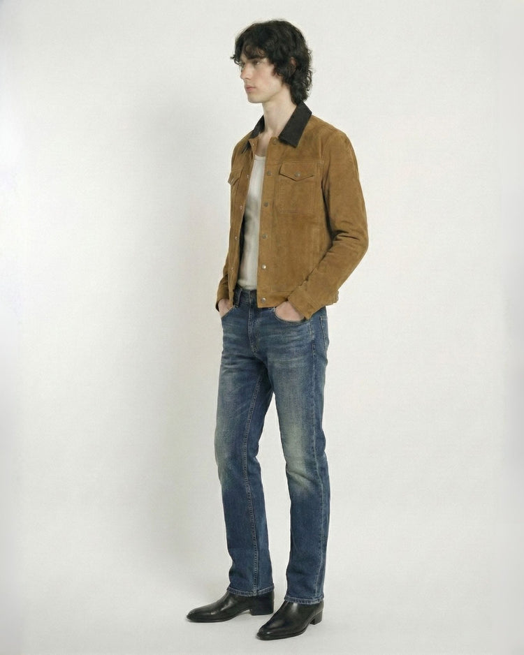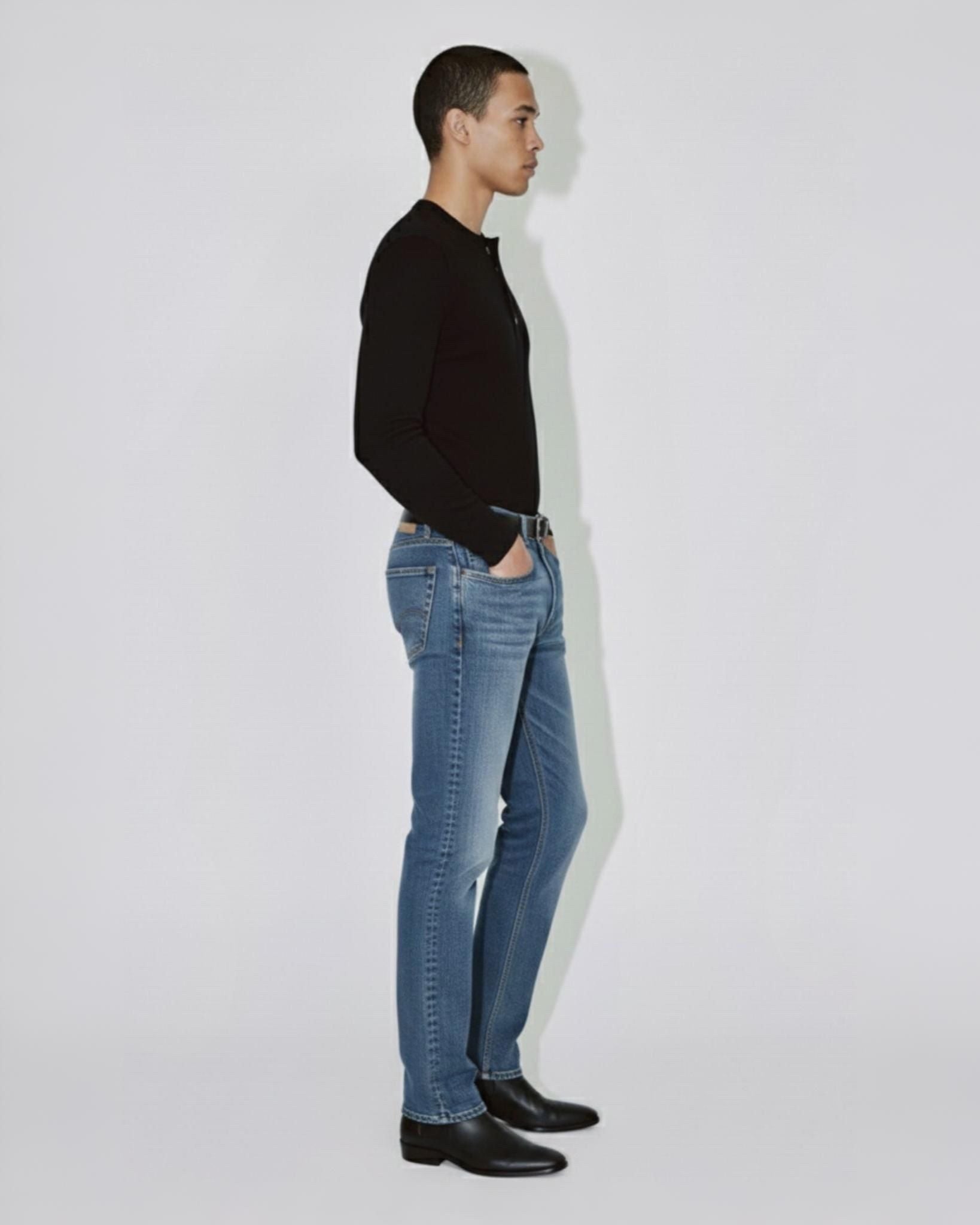 フレイデニム丁寧にエイジング加工を施し、手作業で仕上げられた、愛着のある風合いが魅力の逸品です。タバコ色のスエードパッチが洗練された雰囲気を添えます。ヴィンテージ風のウォッシュ加工とスタイリングが、時代を超えた魅力を瞬時に演出します。シグネチャーのスリムフィットは、膝から裾にかけてテーパードし、美しいシルエットを演出します。